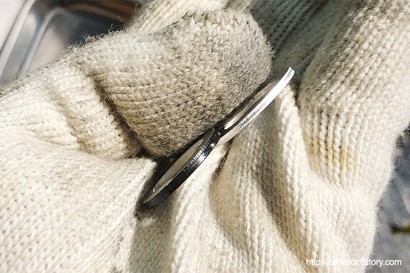 측면에 오일팬 도색시 함께 검정색으로 칠해진 흔적이 남아있는 드레인볼트 와셔도 신품으로 교체합니다.
