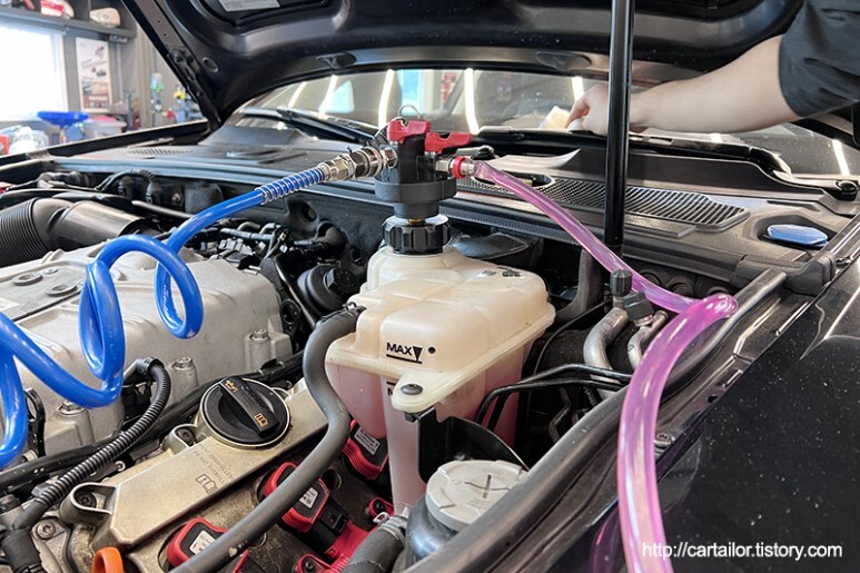 해당 차량에 맞는 규격의 냉각수를 보충합니다.