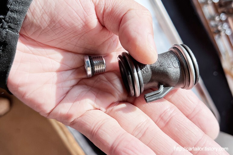 신품 드레인볼트를 규정토크로 잘 체결합니다.