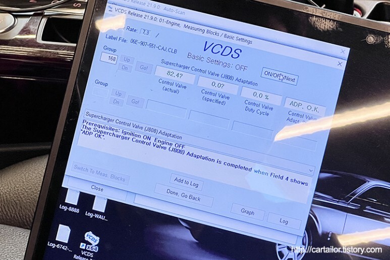 엔진이 열간상태에 도달하면 클리닝으로 인해 유량 및 작동 저항값이 변경된 트로틀바디 및 과급압력제어밸브의 기존 학습값을 소거 후 새롭게 어답테이션을 진행합니다.
