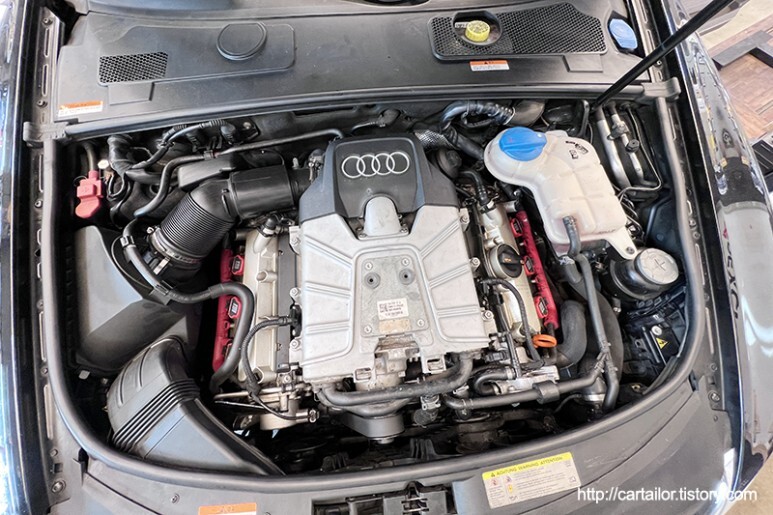 아우디 A6 C6 모델입니다. 입고된 모델은 C6 중에서도 후기형 모델로, A6 중에서는 슈퍼차져 방식의 과급기를 사용하는 3.0TFSI 엔진이 처음 적용된 차량으로 기계식 방식의 토센 콰트로 시스템과 ZF6단 자동변속기와 매칭되어, 300마력의 출력을 자랑합니다. C7모델에 적용되는 엔진과 거의 같지만, C6 모델에서는 다소 마초적이고 스포티한 느낌이 강하게 느껴지는 반면, C7모델에 와서는 시종일관 부드러움과 정숙성을 잃지 않는 모습이 특징인데요, C6의 경우 이런 스포티한 감각덕분에 C7 대비 10마력이 낮은 출력에도 불구하고 뭔가 더 잘나가고 출력이 더 높은 차량을 모는 듯 한 느낌도 받게 됩니다.