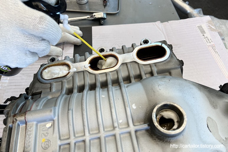 흡기쪽 역시 약품으로 잘 불려내 오일 때 및 카본을 최대한 녹여낸 후 모두 빨아내 줍니다.