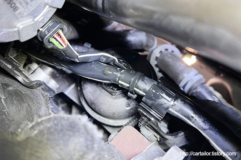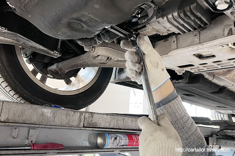 레벨확인 후 다시 시동을 걸고 하부 작업부위를 꼼꼼하게 살펴 봅니다. 누유나 특이사항이 없이 깔끔합니다.