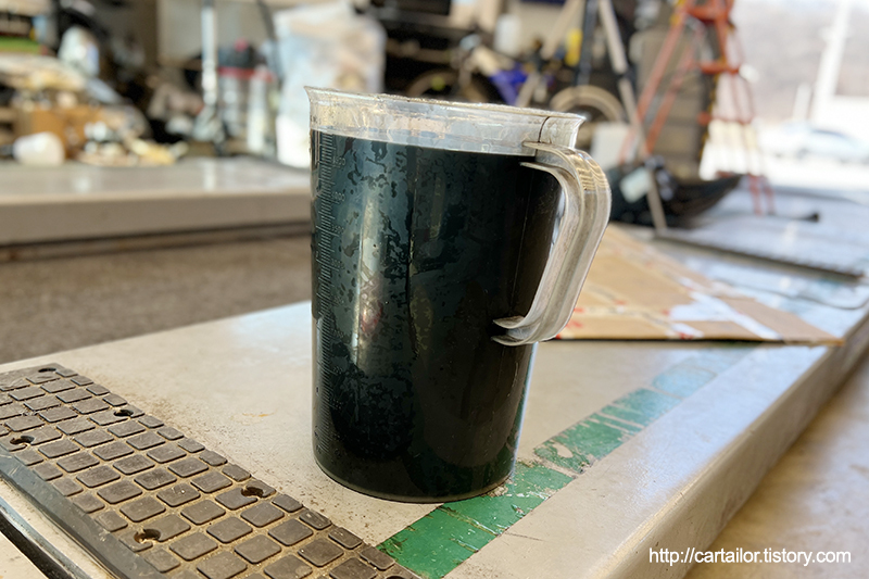 신유를 주입합니다. 요즘 처럼 기온이 낮을 때면, 신유를 주입할 때 제품의 점도차이가 잘 느껴집니다. 기존 5W-30 제품들 보다 육안으로 보이는 점도도 묽고 주입도 빠르거든요. 하지만 날씨가 따뜻할 때는 육안상으로는 큰 차이가 없습니다.
