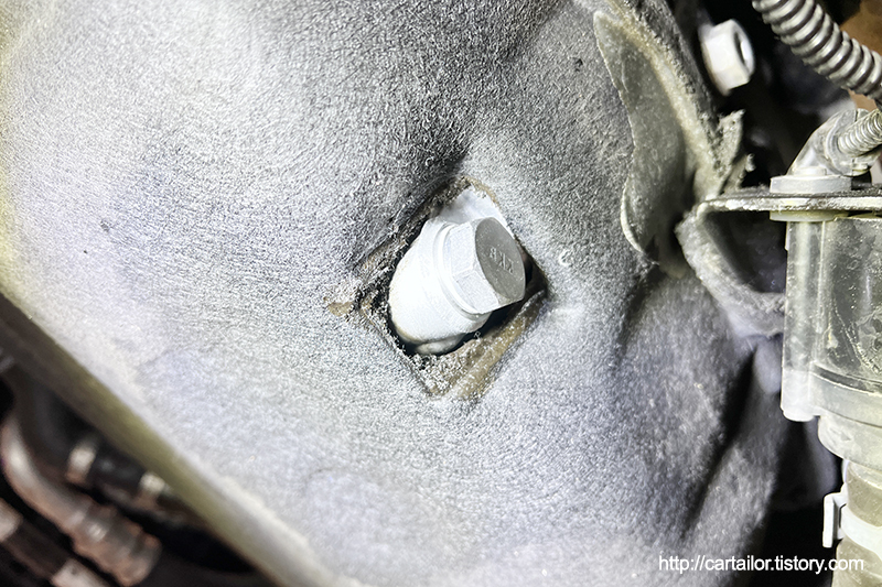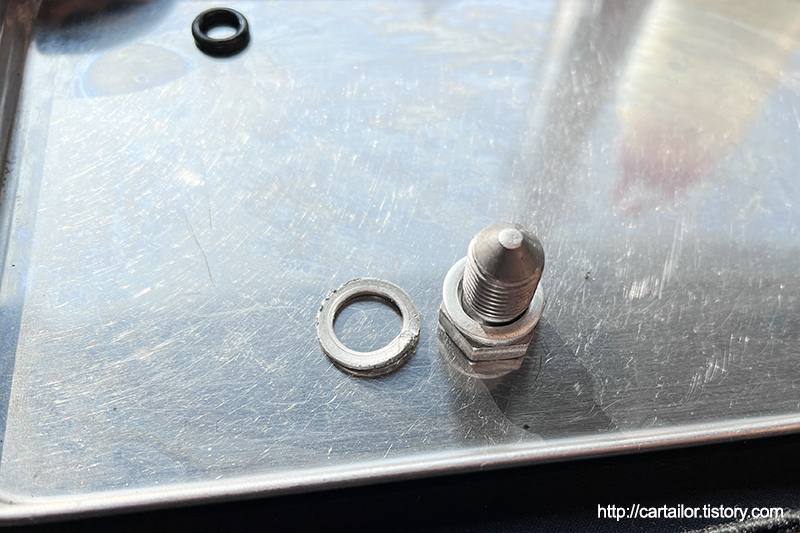 드레인볼트 와셔를 신품으로 교체 후 손으로 살살돌려 꽉 잠가줍니다.