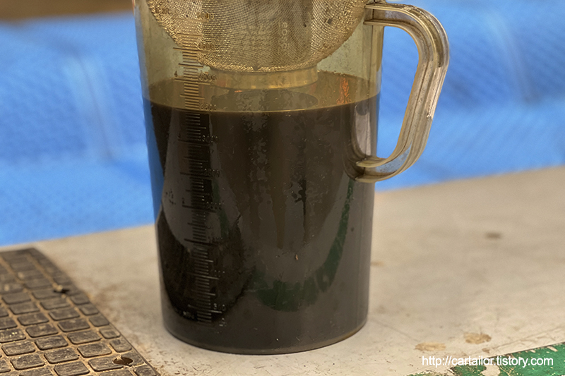 더뉴니로에서 배출된 엔진오일의 모습입니다.