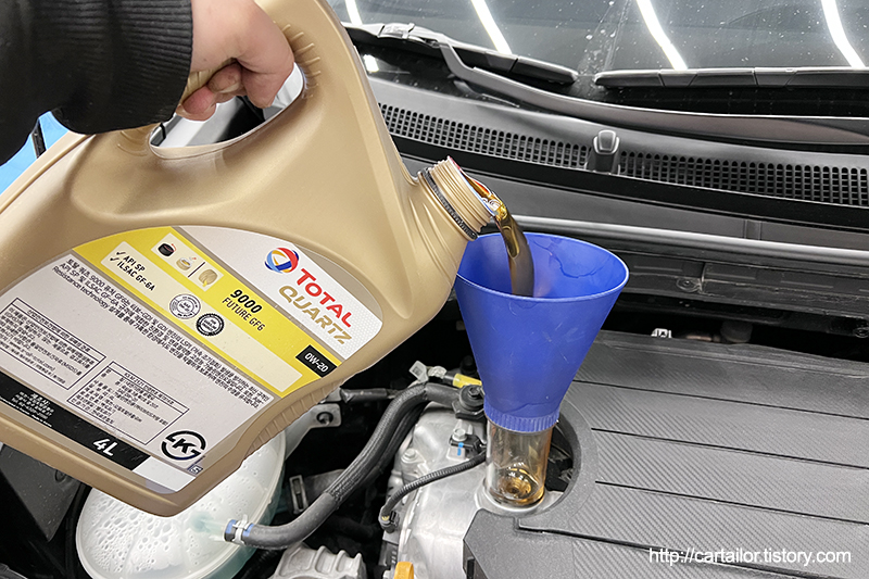 준비한 오일은 토탈쿼츠 9000 퓨쳐 GF-6 0W-20 입니다. 최근 패키지가 새롭게 리뉴얼되었는데요. 기존 디자인보다 훨씬 좋아 보입니다.