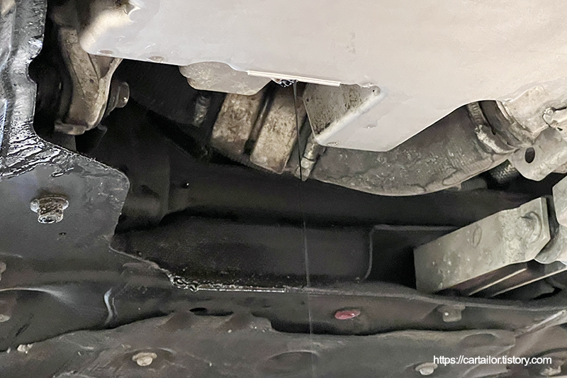 레벨 확인 후 다시 차를 들어올려 하부 작업부위에 누유나 작업흔적은 남지 않았는지 꼼꼼하게 확인합니다. 완벽하네요!