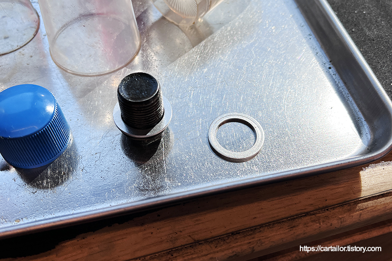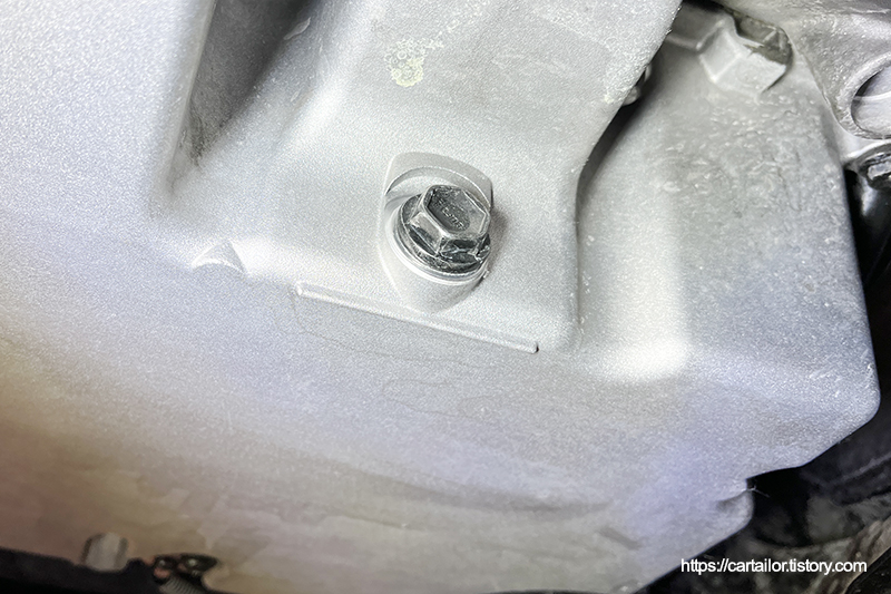 드레인볼트 와셔 역시 신품으로 교체 후 손으로 꽉 잠가 줍니다.