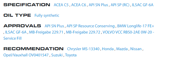 즉, VCC RBSO-2AE 인증이나 규격이 없는, 일반적인 C5나 C2규격의 0W-20은 절때로 사용하면 안되겠습니다. 볼보 스팩은 무늬만 0W-20이지, 0W-25나 0W-30에 더 가까운 규격입니다.