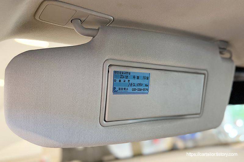 차량 서비스 주기 리셋 및 교환주기 안내 스티커 부착을 끝으로 작업이 종료됩니다.