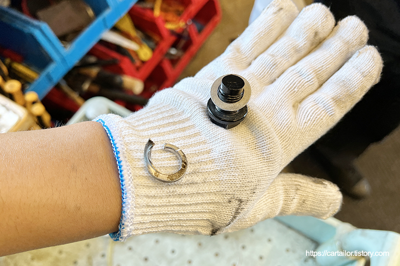 드레인볼트 역시 오일필터와 마찬가지로 손으로 1차 체결 후 토크렌치를 사용하여 규정된 값으로 잠가줍니다.