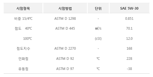 섭씨 40도 및 100도 동점도는 평균적인 5W30 대비 살짝 높긴 하지만 디젤엔진용으로 출시된 상품이니까요. 그리고 실제 MB229.51 규격은 5W40이 더 보편화 되있기는 하거든요. 하지만 초반 토크가 높은 디젤엔진에게 동일한 점도 군에서 이정도로 살짝 높은 점도는 정숙성이나 진동억제에 유리할 것 입니다. 특히 내열화성의 성능을 가늠할 수 있는 대표적인 지표 중 하나인 인화점이 228도로 해당 가격군 뿐만 아니라 VHVI 기유 합성유로써는 거이 탑 수준입니다. 점도지수도 매우 양호합니다만, 약간 첨가제 빨 인거 같기도 하구요( VMA비중이 5~9% ). 이리보고 저리봐도 좋습니다. 크게 흠 잡을 때가 없어 보입니다.