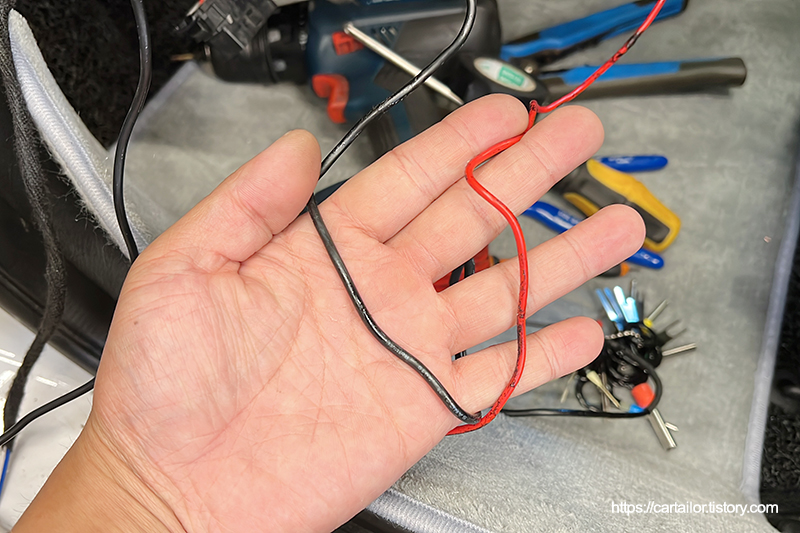 신규로 추가되는 배선들은 정비지침서에 명시된 굵기의 배선을 사용하였습니다. 열선핸들을 구동하기 위한 전력 소모량이 많기 때문에 반드시 굵기에 맞는 배선을 사용해야 합니다.