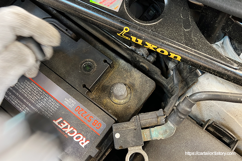 배터리 마이너스 단자를 탈거해 전원을 차단한 후 시작합니다.