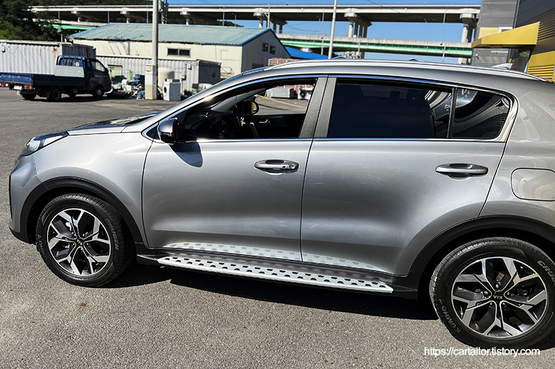 스포티지QL 4세대의 후기형 버젼, 더 볼드입니다. 세련된 짙은 그레이 컬러가 돋보이는데요, 승하차 시 높은 차고로 인한 불편함과 더불어 SUV라는 타입에 걸맞게 외관을 더욱 스포티하게 바꾸고자 피터웍스에 입고되었습니다.