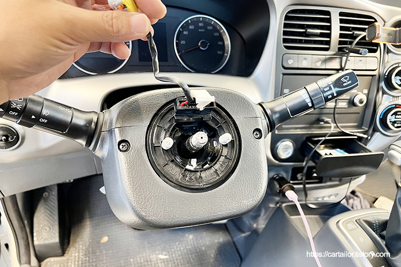 핸들을 탈거 후, 클락스프링이 돌아가지 않도록 고정시켜줍니다.