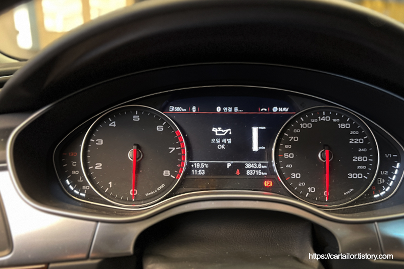 시동을 끄고 레벨 먼저 확인합니다. 교체주기를 감안했을 때 레벨은 안정적입니다. 3.0 TFSI 엔진들은 오일 소모가 있기 때문에 한번씩 MMI를 통해 모니터링하는 습관을 만들면 좋습니다.