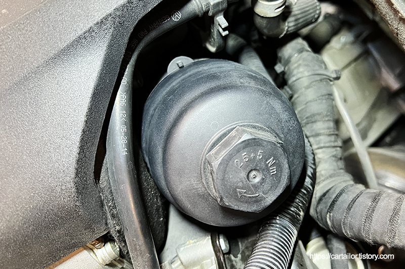 깨끗하게 세척한 필터 하우징에 신품 필터와 오링을 장착 후, 모든 접촉면에 신유를 발라 윤활시켜 줍니다. 오일 바디에도 신품 씰링 장착 및 신유를 바른 후, 하우징을 결합해 규정토크로 정확하게 체결하고요.