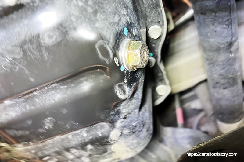 드레인볼트는 신품으로 교체 후 역시 토크렌치를 사용하여 규정된 잠금값으로 정확하게 체결합니다.