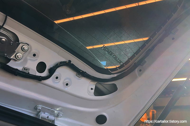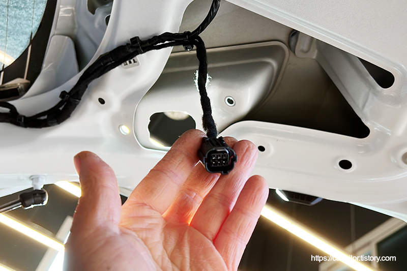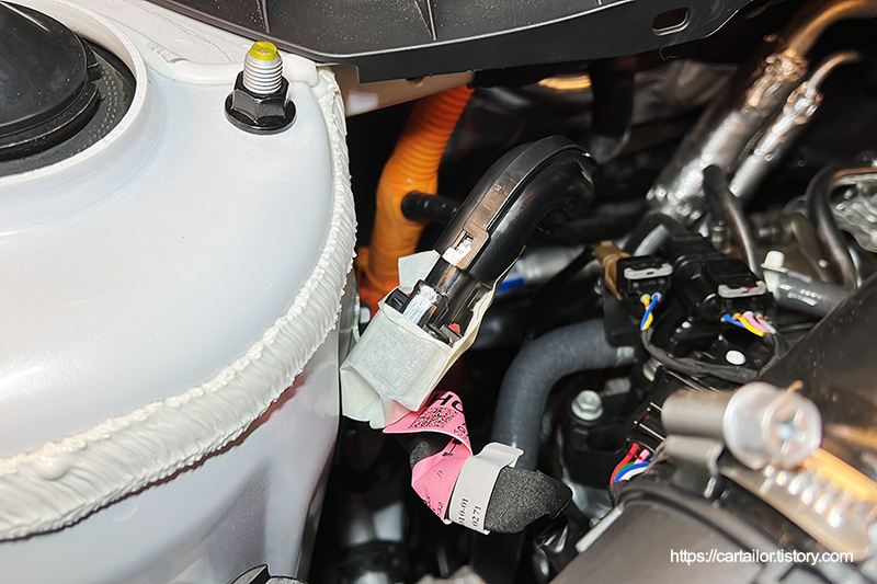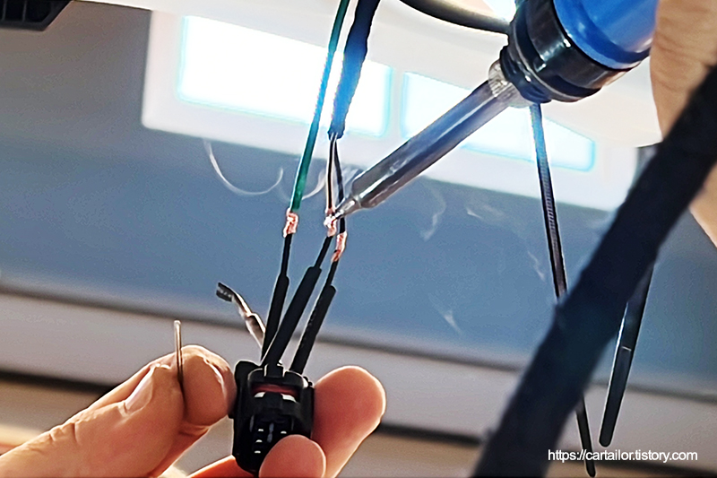 커넥터 배선은 납땜 후 수축튜브로 꼼꼼하게 마감하며, 새롭게 추가되는 배선은 면테이프로 감싼 후 순정 배선라인을 따라 잘 고정시켜 줍니다.