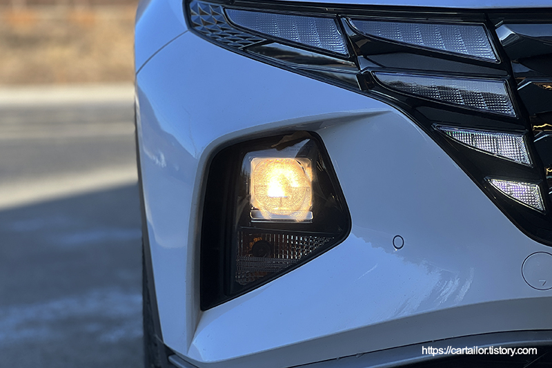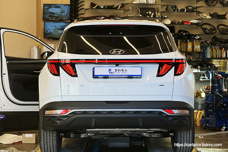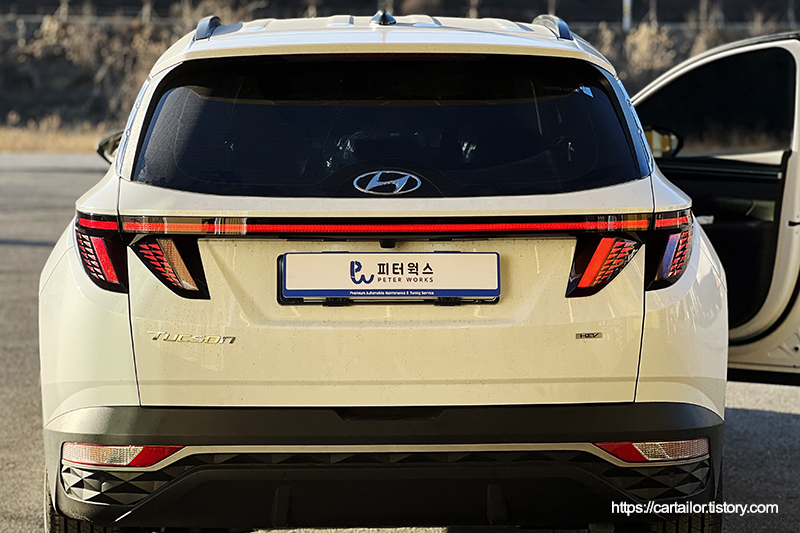 투싼 역시 원자재 수급 문제등으로 인해 원하는 사양으로 출고하기가 매우 어려운데요, 해당 차량 역시 할로겐사양으로 출시가 되어 NX4의 시그니처 LED 뒤태가 생략되었고 전조등 역시 어둡고 침침합니다. 또한 후석 USB포트가 없는 등 소소한 불편함이 있어 이를 해결하기 위해 피터웍스를 찾아 주셨습니다.