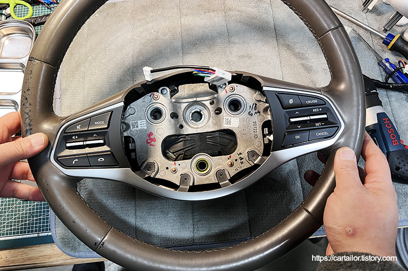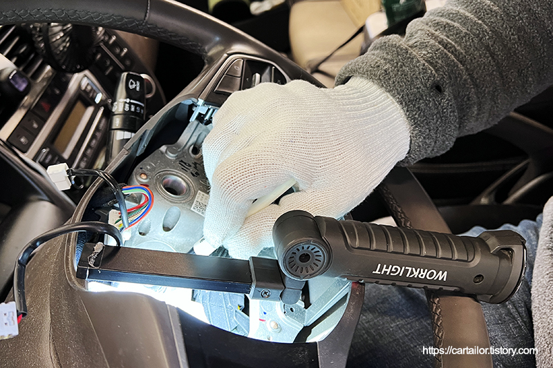 탈거했던 에어백 모듈을 장착하면 교체 작업이 종료됩니다.