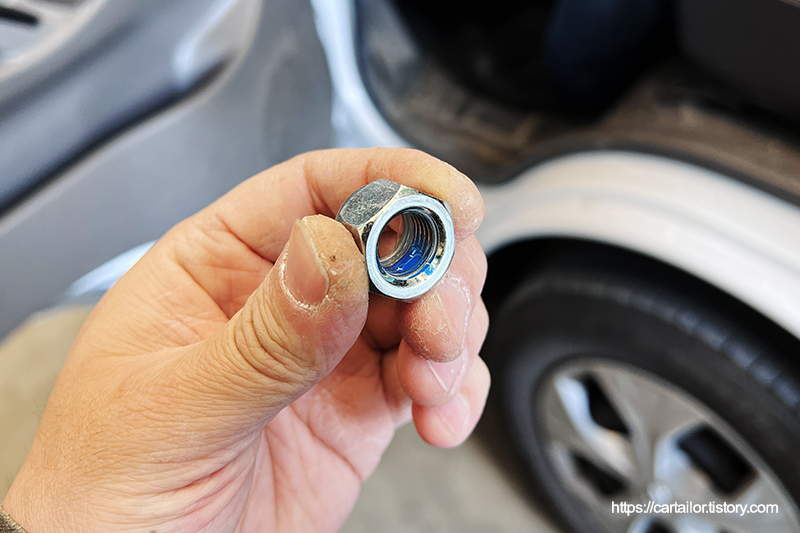 소량의 나사풀림방지제를 허브 너트에 바른 후, 토크렌치를 이용해 규정토크로 체결합니다.