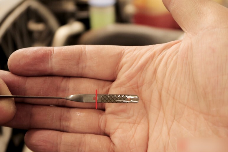 시동을 걸어 신유가 자리잡게 한 후, 시동을 끄고 수분 후 엔진오일레벨을 확인합니다.