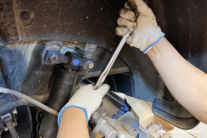 패드를 조립 후, 토크렌치를 사용하여 규정토크로 정확하게 체결합니다.