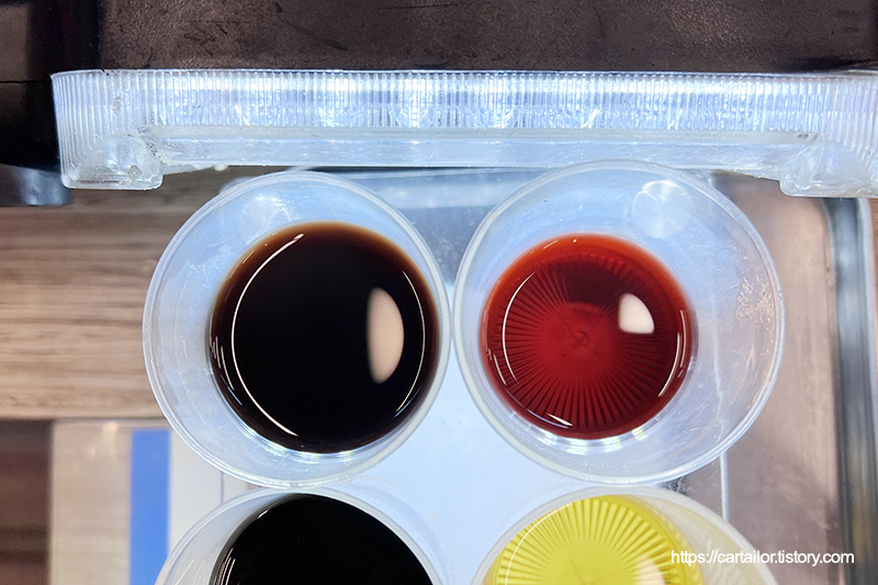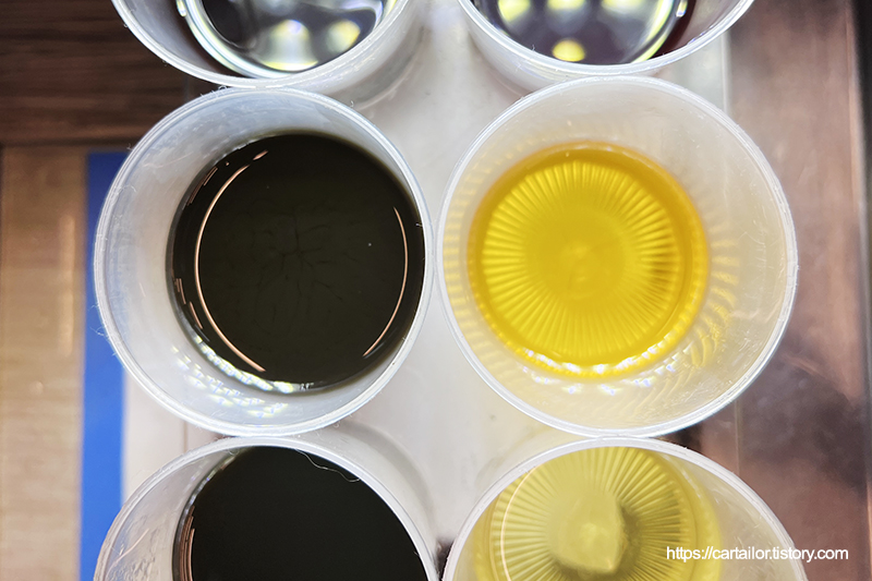 샘플링을 통해 상태가 개선되었음을 확인합니다. 우측이 2차 배출분인데, 이상태에서 배출 후 신유가 한번 더 들어갔기 때문에 훨씬 더 신유에 가까운 상태가 되었을 것입니다.