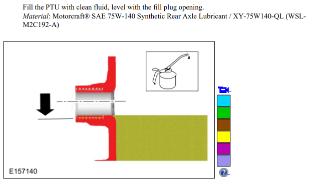 리어디퍼런셜의 경우 주입구 최하단으로 부터 3mm 정도 아래 까지 채워 넣으라고 되어있습니다. 3mm 정도의 레벨차이로 성능이나 내구성에 영향을 미칠리는 만무하고, 아마도 PTU 주입구 볼트와는 다르게 라킹플루이드를 도포 후 체결하게 되어 있는 리어디퍼런셜 주입구볼트에 라킹플루이드와 오일이 섞이거나 묻는 것을 방지하기 위해 이렇게 하라고 명시하고 있는 것 같습니다.