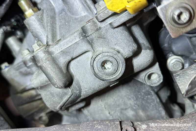 해당 차량은 전륜구동 기반형 4륜 구동차량이기 때문에, 전륜디퍼런셜 메카니즘은 일반적인 전륜구동 차량들 처럼 변속기 내부에 포함되어 미션오일과 공유하기 때문에 미션오일 교환만으로도 함께 교체가 되어 별도의 오일 관리가 필요없습니다. 간혹 전륜구동 기반의 차량이라도 별도의 전륜 디퍼런셜 오일을 사용하는 차량도 있고, 반대로 후륜구동 기반의 차량이 변속기 오일과 전륜 디퍼런셜을 공유하는 경우도 있기 때문에 작업 전 지침서 등을 잘 살펴 보아야합니다.