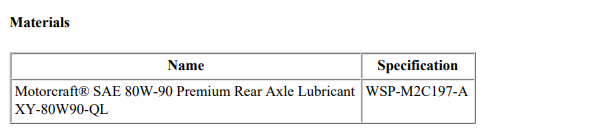 후륜 디퍼런셜의 경우 80W-90 점도의 WSP-M2C197-A 규격을 사용하는데, 점도 자체는 일반적이지만, 규격이 흔하게 구할 수 있는 제품이 아니라 선택의 폭이 많지 않습니다. 해당 규격의 초도충진유의 경우 합성유인지 알 수 없으나, 양호한 주행환경 시 반 영구적인 사용이 가능하다고 주장하고 있고, 제품명에 "Premium" 문구가 있는 걸로 봐서 100% 합성유 혹은 반합성유에 내마모 성능향상 및 내산화를 방지하기 위한 고급 첨가제를 첨가하여 제조하지 않았을까 추정됩니다.