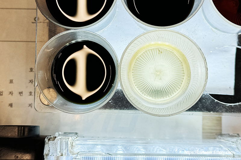 샘플링하여 신유와 비교해 봅니다. 좌측은 사용유 우측은 주입한 신유입니다.