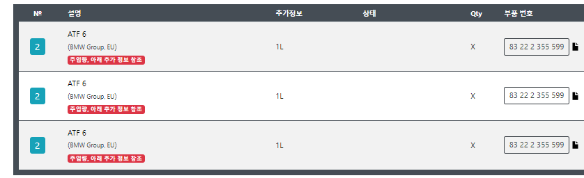 이번에는 후측 디퍼런셜오일을 교환할 차례입니다. 해당 차량의 차대번호로 조회를 해 보니 83222413512(BMW Hypoid Axle Oil G3 70w80)로 조회가 됩니다.