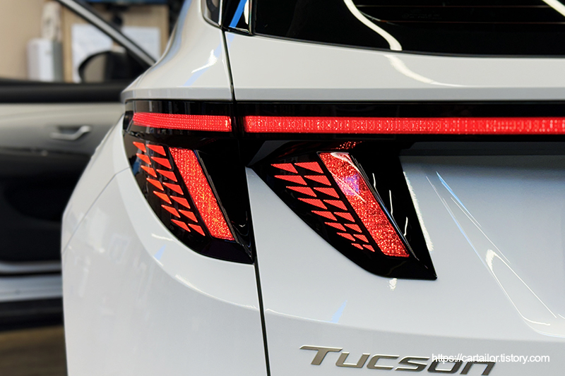 24년형 투싼 페이스리프트 모델인 더 뉴 투싼(NX4) 하이브리드 모델입니다. 투싼의 아이덴티티 중 하나인 순정 LED 콤비네이션 램프 장착을 위해 입고되었습니다.