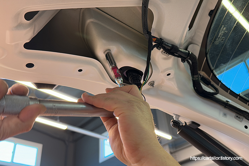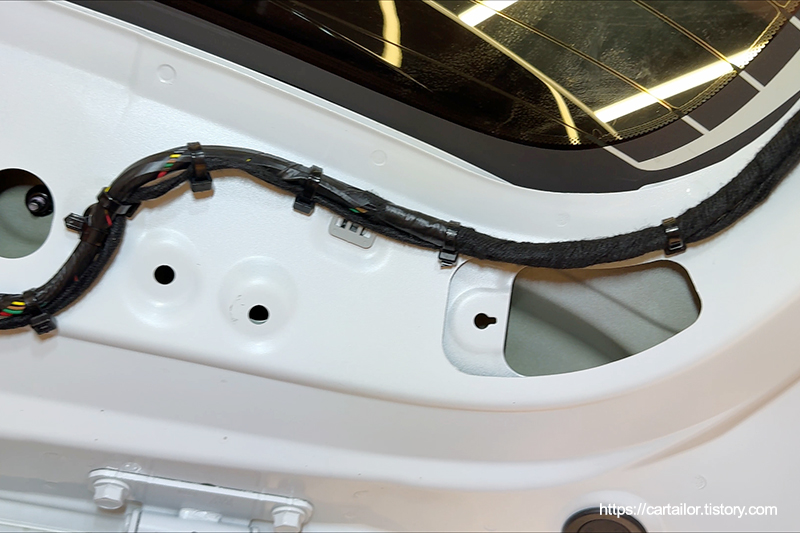 신규로 추가되는 배선들은 모두 흡음테이프로 감싸 잡소리를 방지한 뒤, 순정 라인을 따라 케이블타이를 이용해 고정하였습니다.
