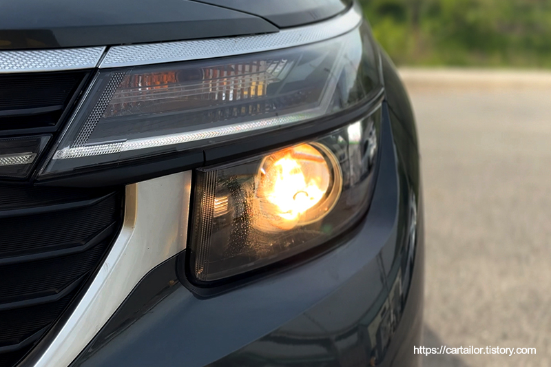 하지만 기존 모델에서도 사용되었던 기본형 할로겐 헤드라이트는 그대로 적용이 되고 있습니다. 최근 전면 틴팅이 필수가 되는 추세이기 때문에 할로겐라이트는 그 어느때 보다 침침하고 어둡습니다. 점등했을 때 세련된 디자인과 잘 어울리지도 않고요.