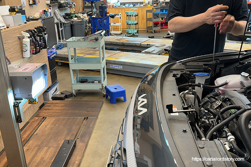 특이사항이 없는 것을 확인 후 조사각 조절에 들어갑니다. 제 아무리 밝은 광원이라도 엉뚱한 곳을 비추면 막상 운전자는 어둡게 느낄 것이고 선행차나 마주보는 차량의 운전자 눈만 부시게 할 뿐입니다.