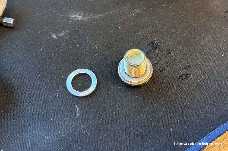 드레인볼트 와셔도 신품으로 교체 후 토크렌치로 잘 잠가 줍니다.