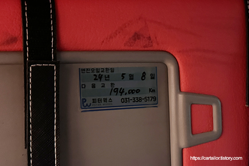 다음 엔진오일교환주기가 기재된 스티커를 부착합니다.