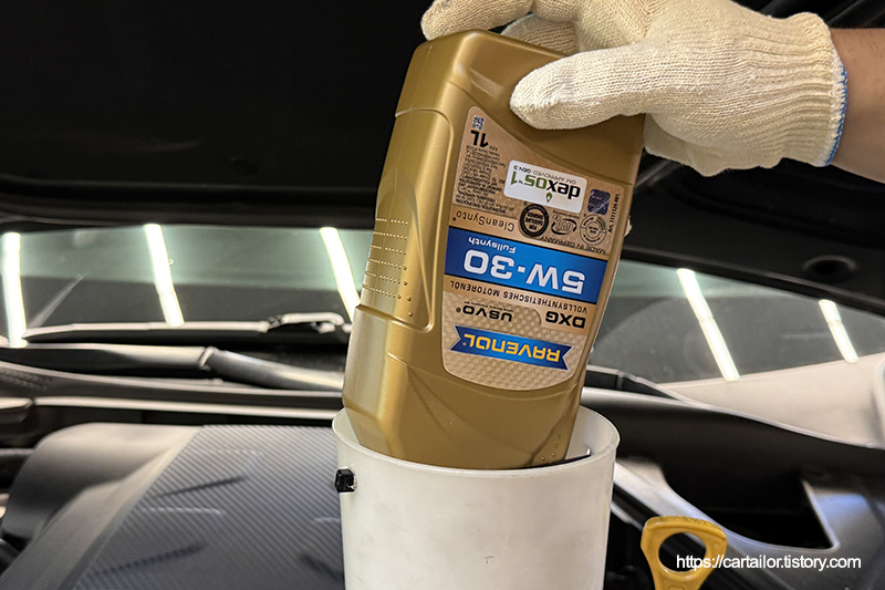 신유 주입이 끝났으면 시동을 걸어 오일 순환 그리고 온도를 올리는 시간을 갖습니다.