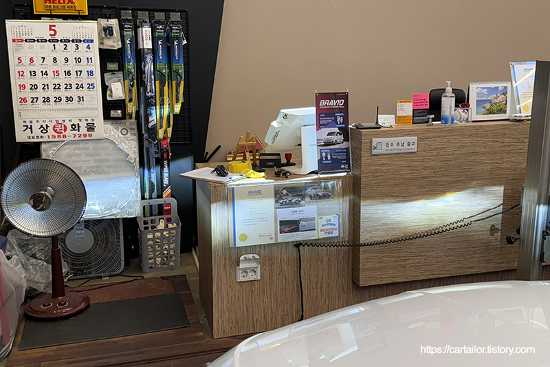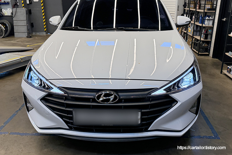 차량 구매 후, 출고 트림에 적용되어 있지 않은 순정 편의 기능과 합법 인증 LED 전조등 설치 작업을 위해 입고된 더뉴아반떼AD 1.6 MPI 모델입니다.