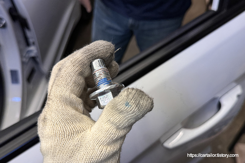 리모트 버튼을 신품으로 교체한 뒤, 스티어링휠을 장착합니다. 허브 볼트에 전용 씰란트를 소량 도포 후 토크렌치를 이용해 규정 토크로 체결합니다.