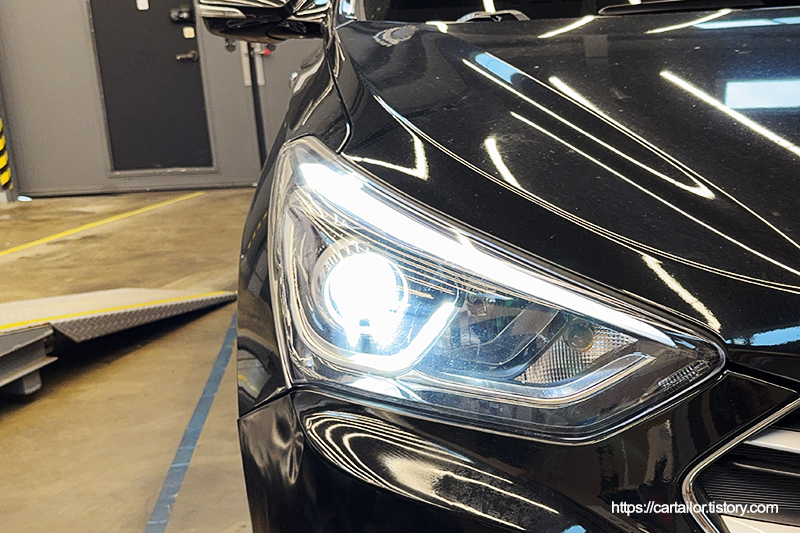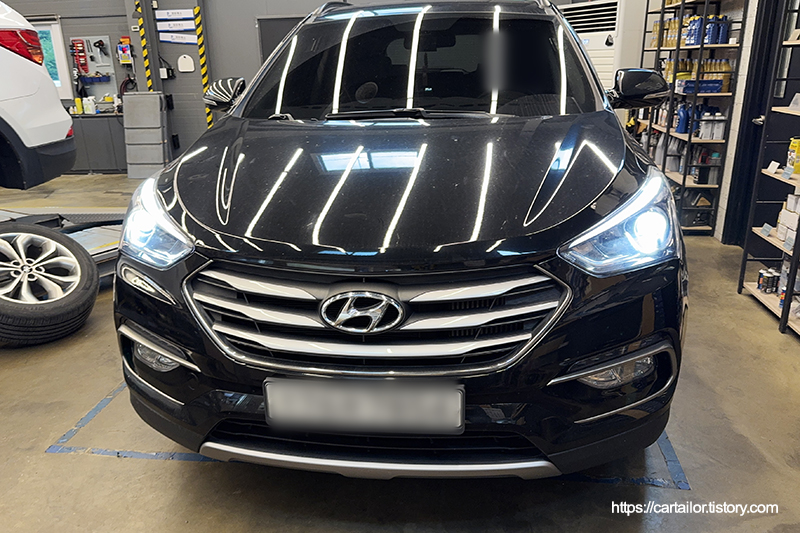 싼타페 DM 차량이 입고되었습니다. 보통 합법 인증 LED 튜닝 작업을 소개할 때 어두운 야간 시야 개선과 세련된 라이트 색온도 두 가지 모두를 위해 입고된다고 소개하는데요. 이번 차량은 단 하