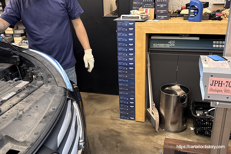 싼타페DM 더 프라임 차량으로, 동승석쪽 전구가 나가 동일한 할로겐 전구로 교체하는 대신 합법적으로 라이트 광량 개선을 위해 인증 LED 헤드라이트 작업을 진행합니다. 프라임 전작인 싼타페DM 모델의 경우, 반사판 관련 이슈가 많이 불거진 차량 중 하나인데요, 관련 내용은 하단 포스팅에서 확인할 수 있습니다.