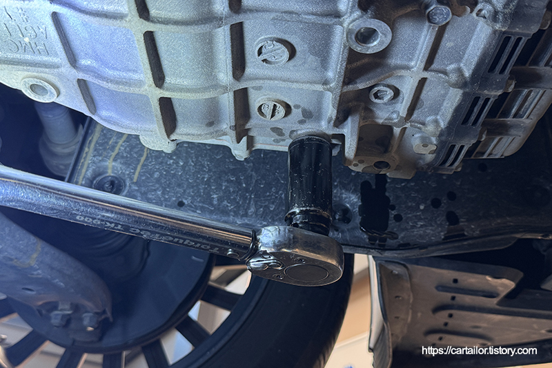 언더커버를 탈거 후, 기존 사용유를 배출합니다.