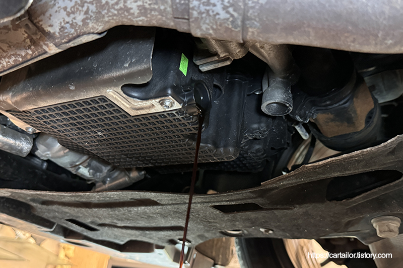 매 오일교환마다 드레인플러그는 신품으로 교환합니다. 신품 플러그 오링에 신유를 바른 뒤, 체결합니다.