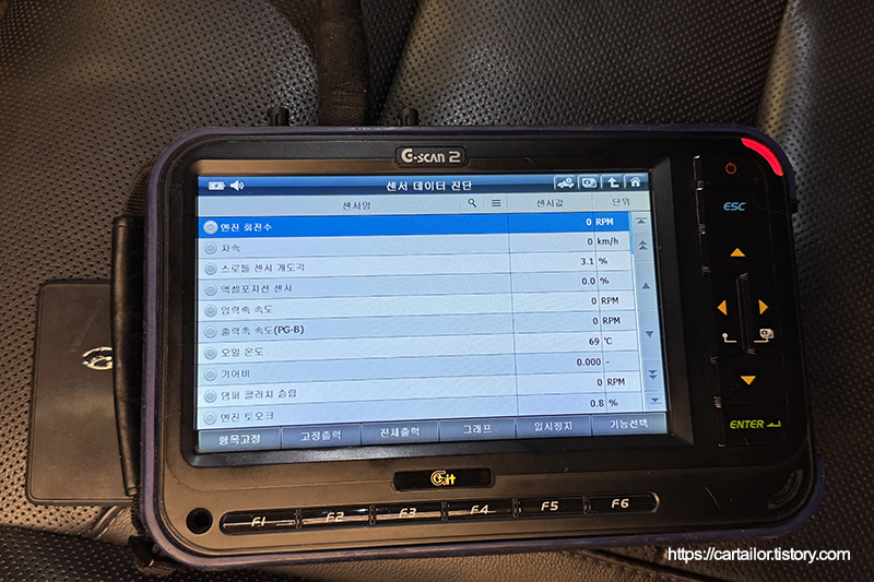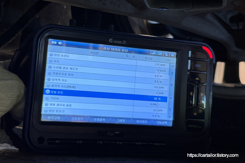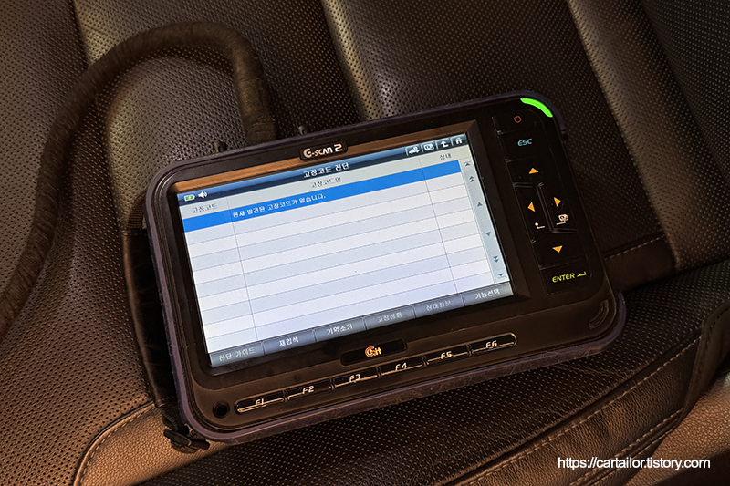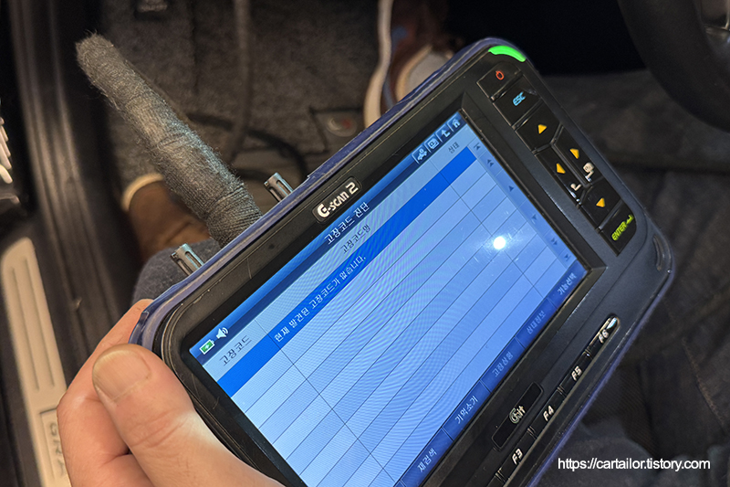시동을 걸어 특이사항 유무 및 고장 코드 여부 확인 후, 다음 작업으로 넘어갑니다. 깨끗합니다.